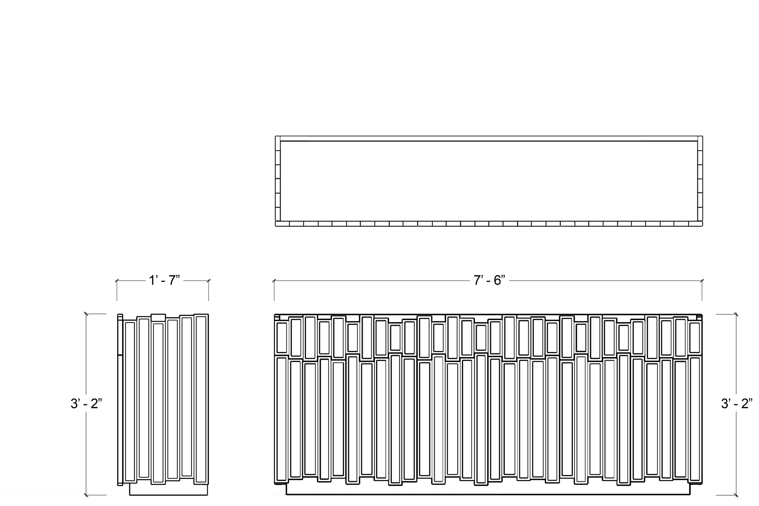 90”w x 19”d x 38”h